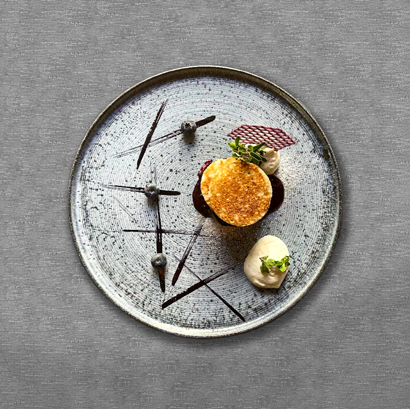 3. Smetanu ochutíme cukrem a dáme do espumové lahve. Na talíře kreslíme omáčkou tvary. Na ně naskládáme kanadské borůvky.